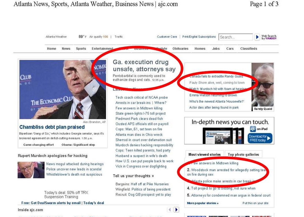 “Georgia Execution Drug Unsafe, Attorneys Say”.  REALLY?*  Isn’t that the point?  If they were safe they wouldn’t be very useful in trying to kill the prisoner now would they?